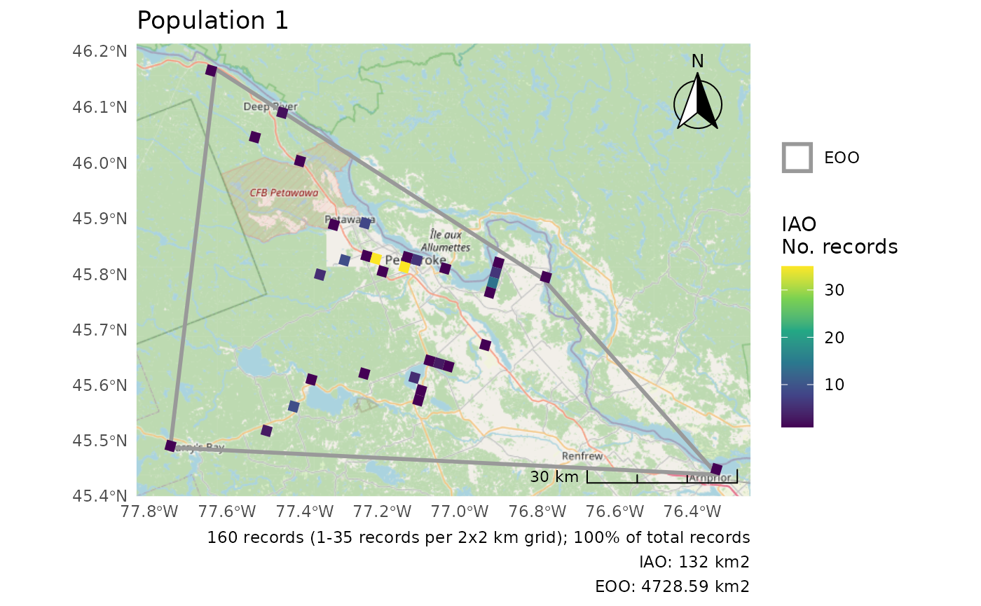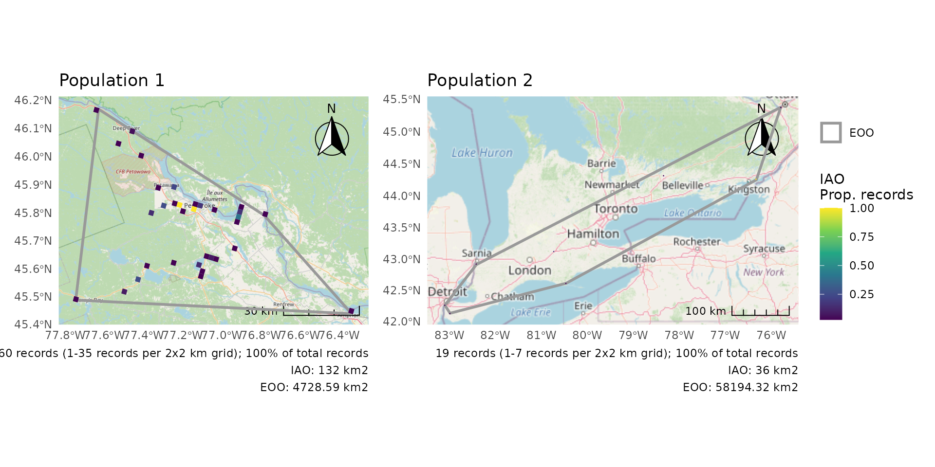 p1 <- cosewic_plot(r1, group = "population", iao_prop = TRUE)