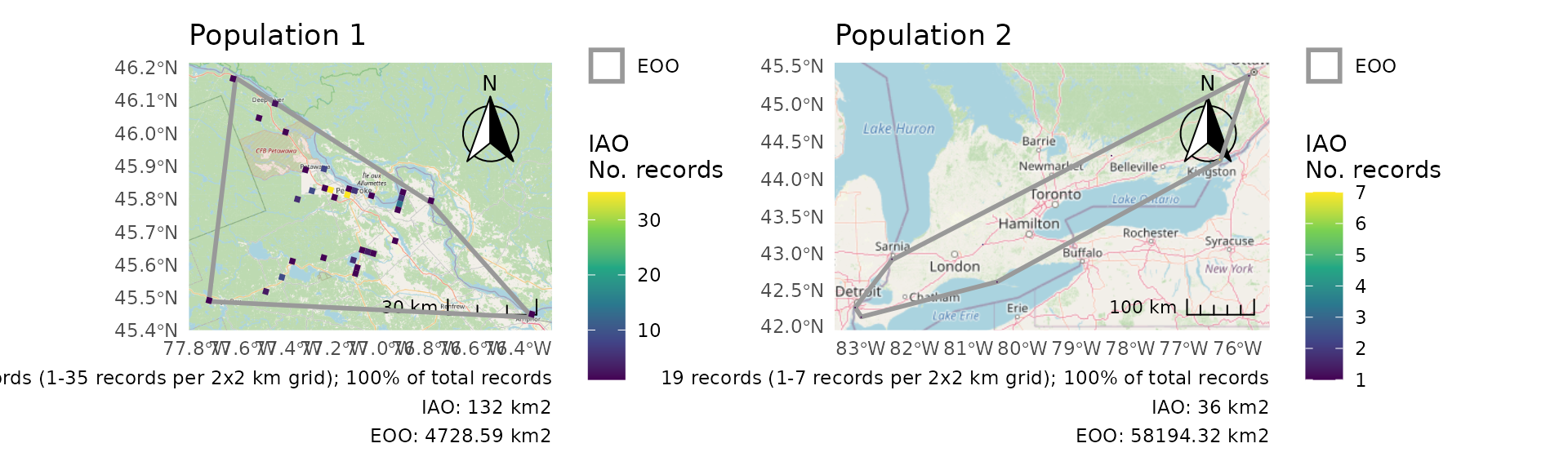 r <- cosewic_ranges(pops, group = "population")Using IAO proportions