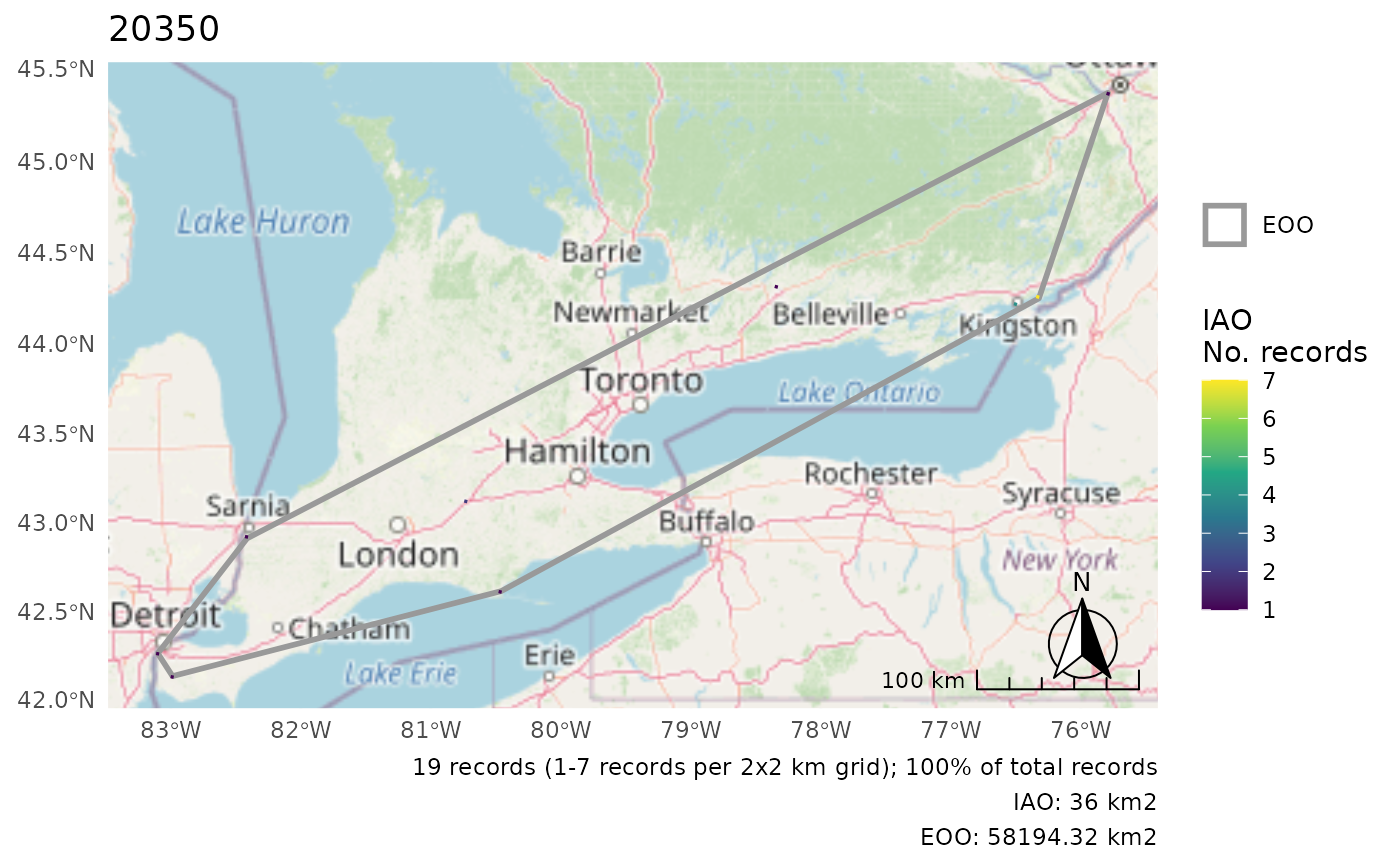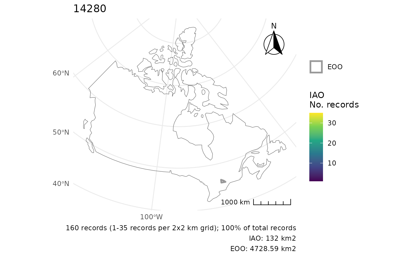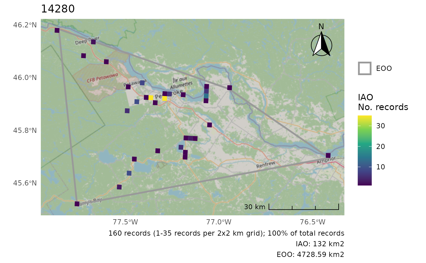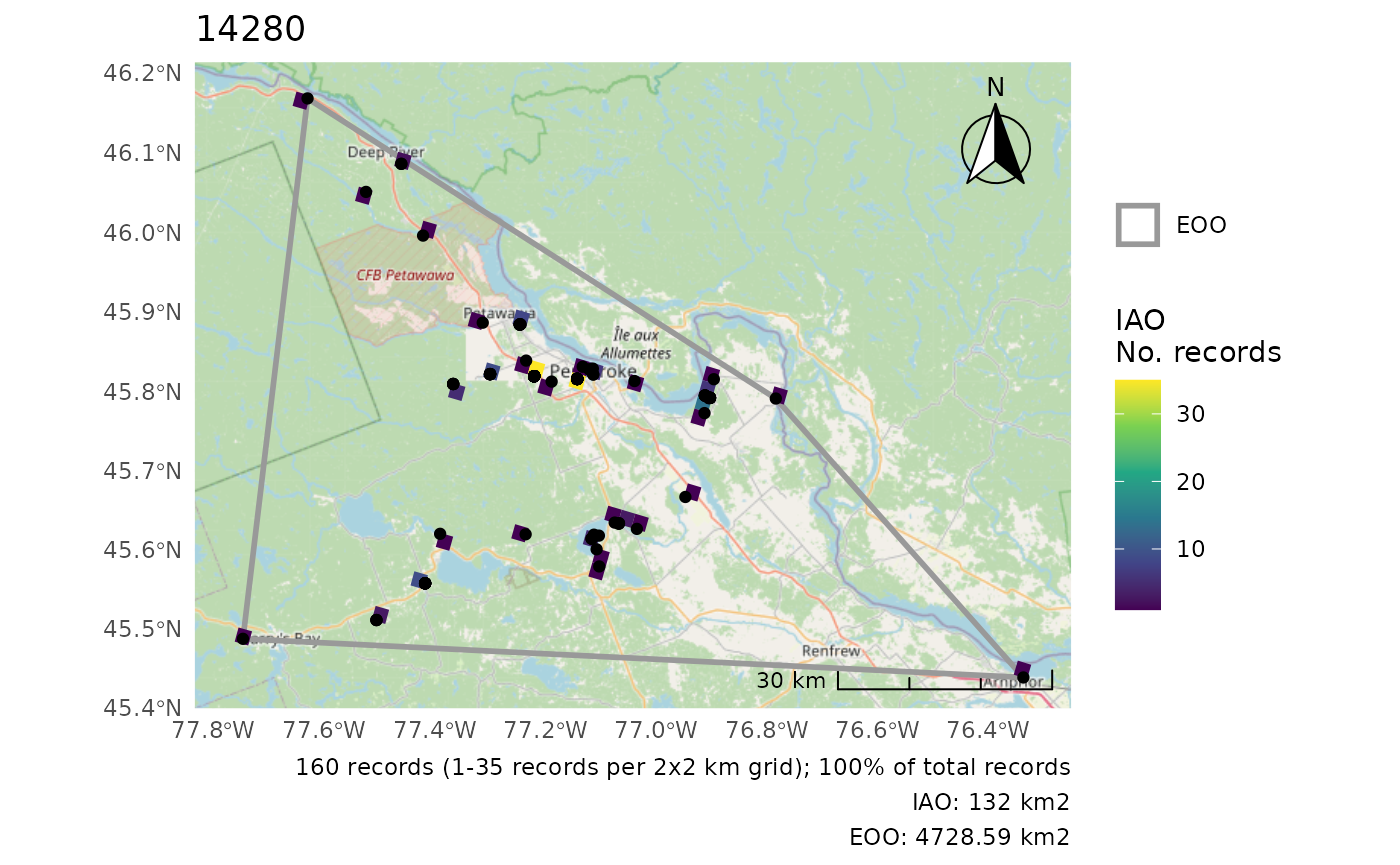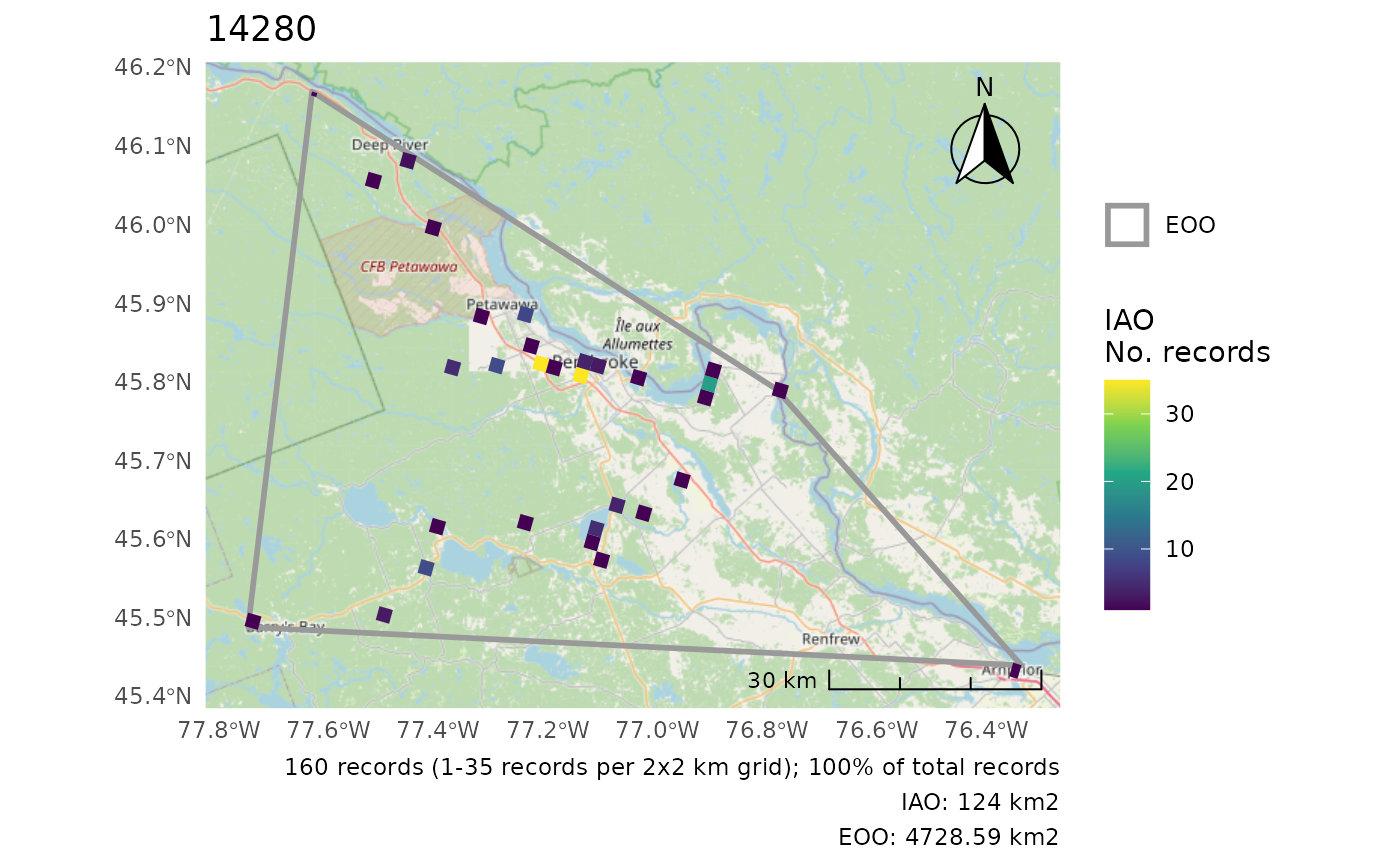 #> 1 33 132 4729. 1Plotting IAO and EOO
