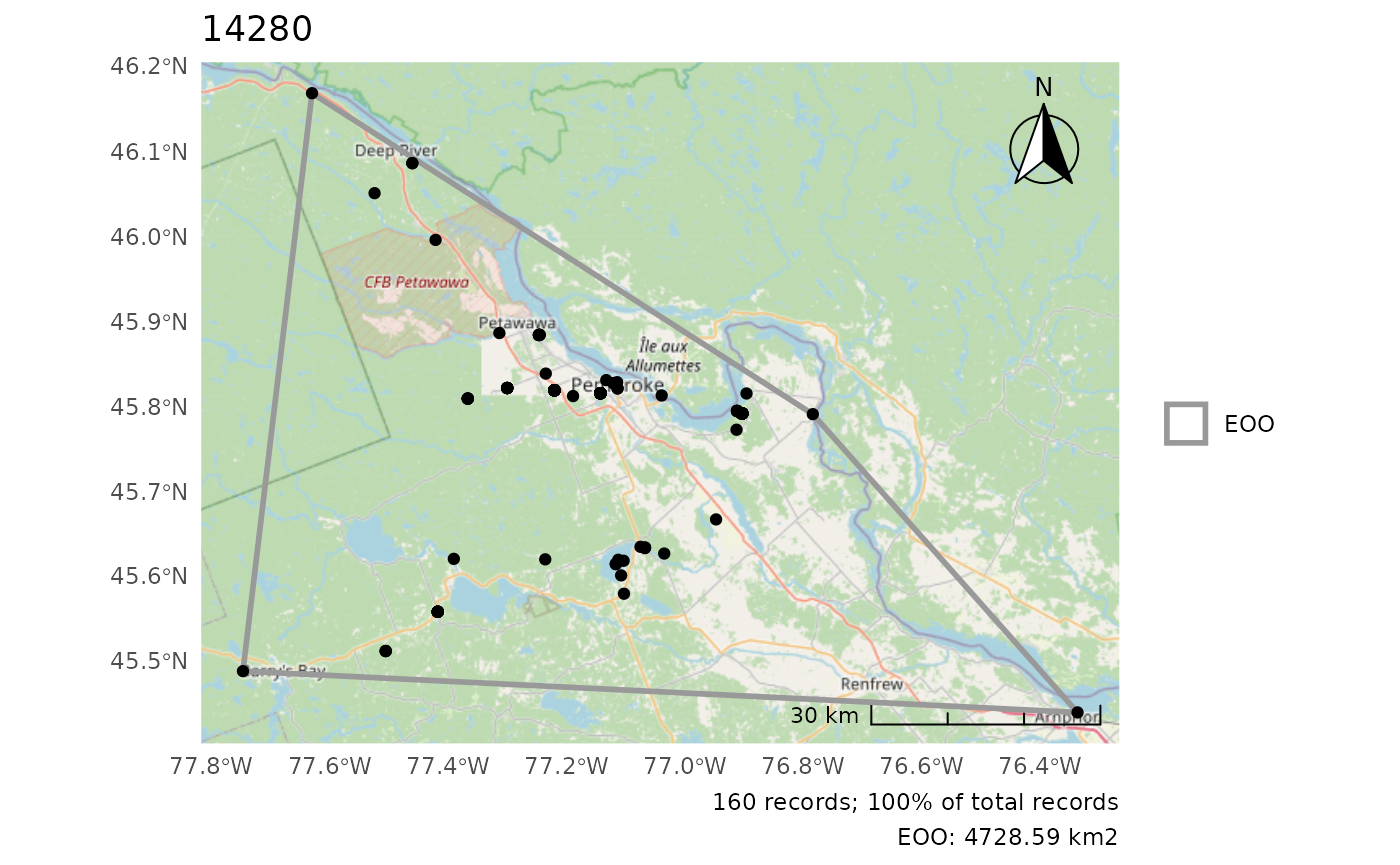 calculations for COSEWIC assessments, namely calculations of the EOO and